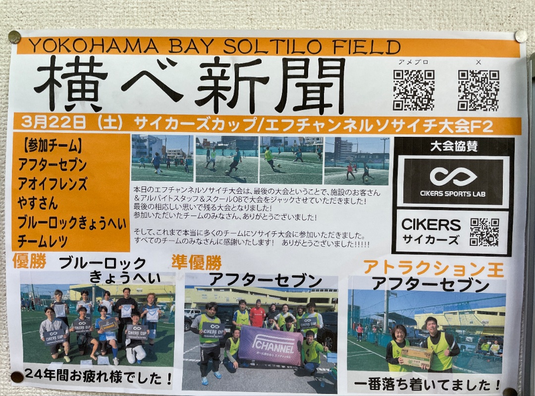 [満員御礼!]【サイカーズカップ】長年のご愛顧をありがとうございました!【施設閉店前ラスト大会】横浜・磯子 ソサイチ大会 (7人制サッカー)※スパイク可
