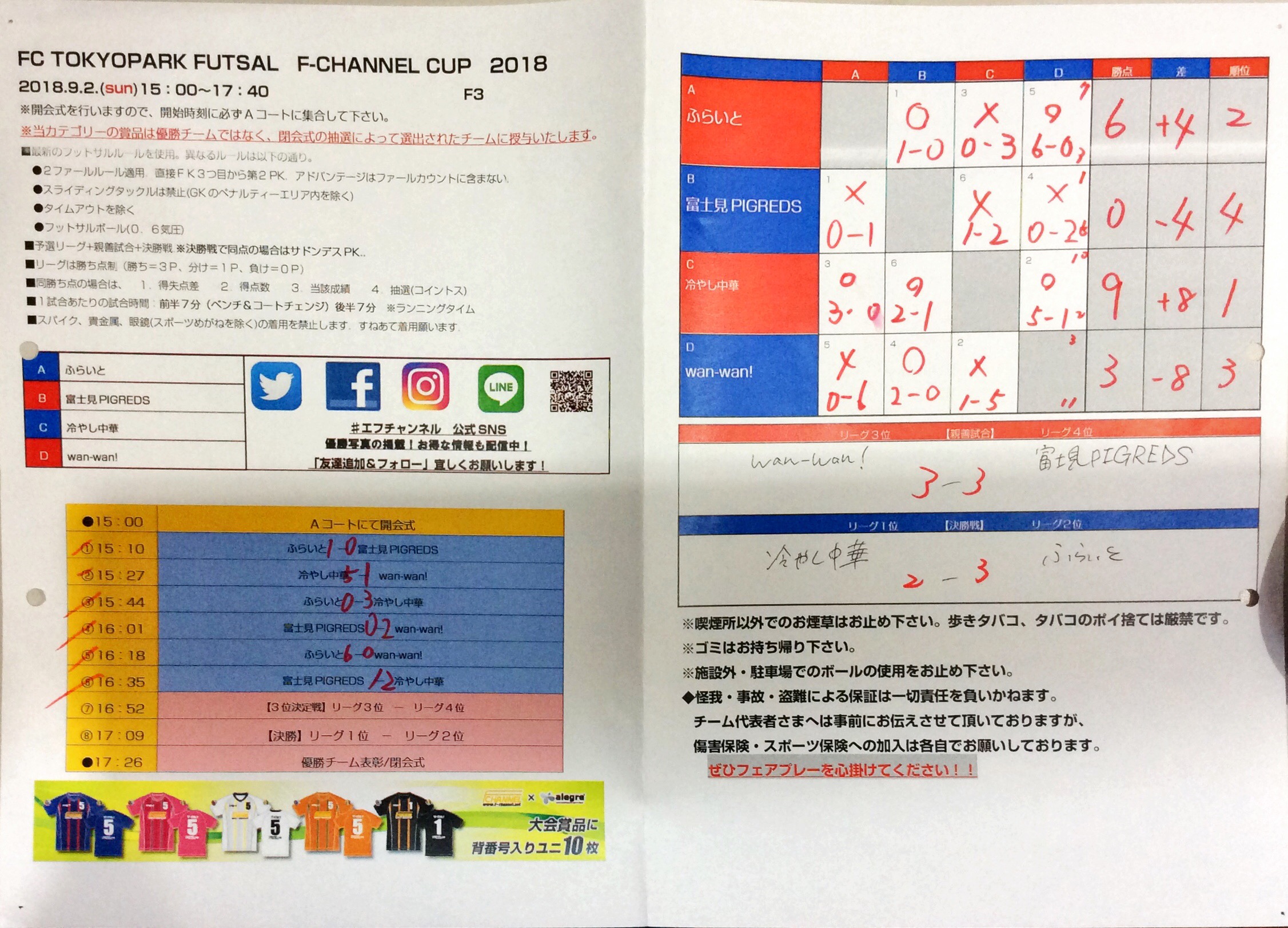 優勝チーム:ふらいと賞品授与チーム:富士見PIGREDSおめでとうございます!ご参加いただいた皆さま、ありがとうございました。
